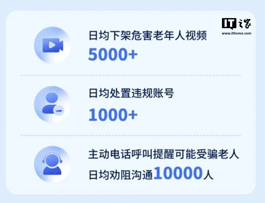 针对老年人易受骗内容,抖音平台日均下架违规视频 5000 余条,并通过电话提醒高风险用户,每日成功劝阻约 1 万人。并通过媒体辟谣团机制,与百家媒体联合发布辟谣热点 1200 余个,总播放量达到 26 亿。