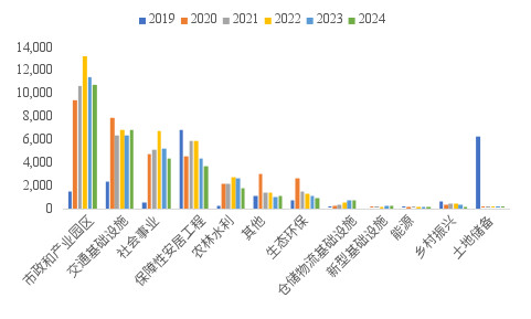 从地方政府专项债券的项目投向看,具体方向跟随政策变化而进行调整,背后的原因可能是增强政府投资效益、重点领域“补短板”、防范化解风险等。比如,2019年9月,为了引导专项债资金更好用于项目建设,专项债资金不再用于土地储备和房地产相关领域、置换债务以及可完全商业化运作的产业项目;结合房地产市场形势变化和实际需要,2025年支持运用专项债券开展土地储备工作,优先将处置存量闲置土地清单中的地块纳入土地储备计划。