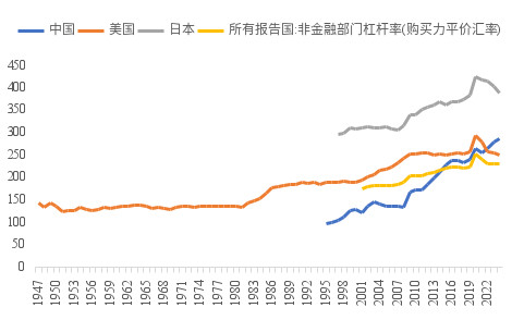 过去80年左右时间里,美国宏观杠杆率上升约100个百分点。受限于BIS数据起始时点,日本、中国分别在过去30年左右时间内分别上升约90个、190个百分点,杠杆率上升速度快于全球报告国杠杆率的总体水平。如今,中国的宏观杠杆率已经超过300%,超过美国且高于发达国家的平均水平,仍低于日本。